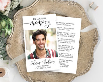 Memorial cards are prevalent in funeral parlors, they stock and provide for those who seek. Check out our custom memorial card selection for the very best in unique or custom, handmade pieces from our prayer cards shops. Funeral and memorial prayer cards are a nice momentos to distribute at funerals, memorials, celebration of life and homegoing services. Create your own memorial cards, funeral announcement cards & prayer cards to download, print or send online for free. Make use of the funeral memorial card templates and examples found in this article.